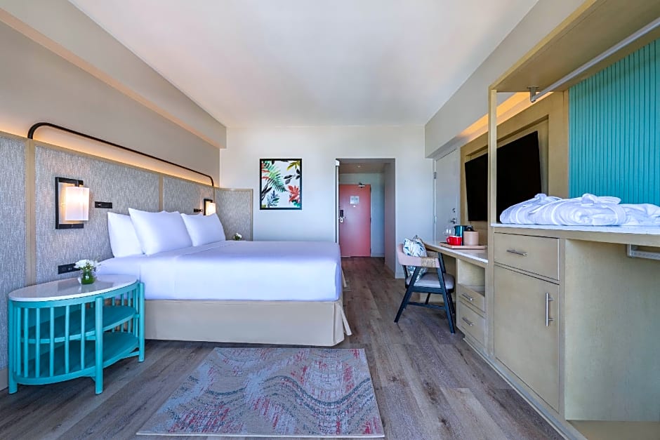 1 Bedroom Suite Oceanfront Balcony 1 King is 710 square feet and includes a king-size bed 150-183 width plus tea and coffee making facilities , safe, and bathrobes.